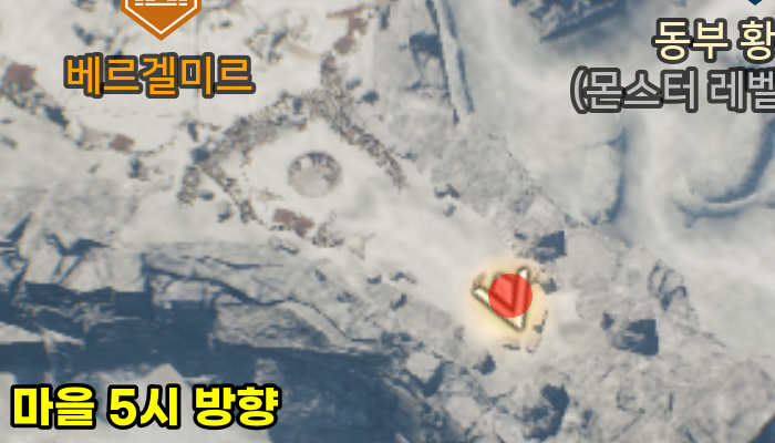 마을에서 5시 방향으로 쭉 내려가면 보물상자 1개가 위치하고 있습니다. 지도의 위치를 확인하고 해당 부분으로 이동하면 바로 보입니다.