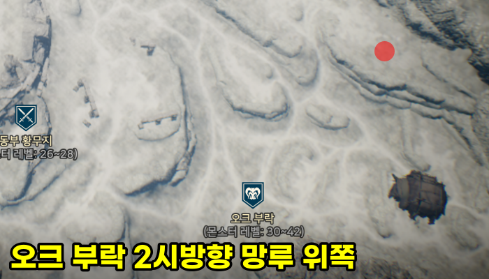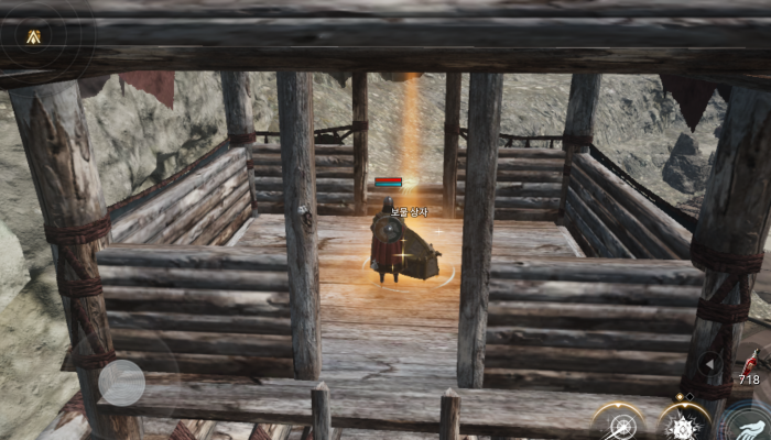 오크 부락 1~2시 방향으로 이동하면 망루가 보입니다. 잘 올라가시면 빛나는 보물 상자를 발견할 수 있죠.