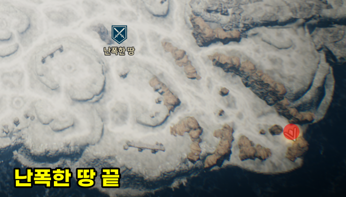 난폭한 땅에서 5시 방향으로 쭈욱 내려오면 절벽쪽에 보물상자 발견할 수 있습니다. 바로 보여요.