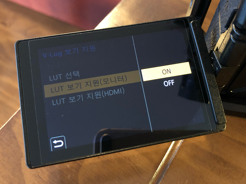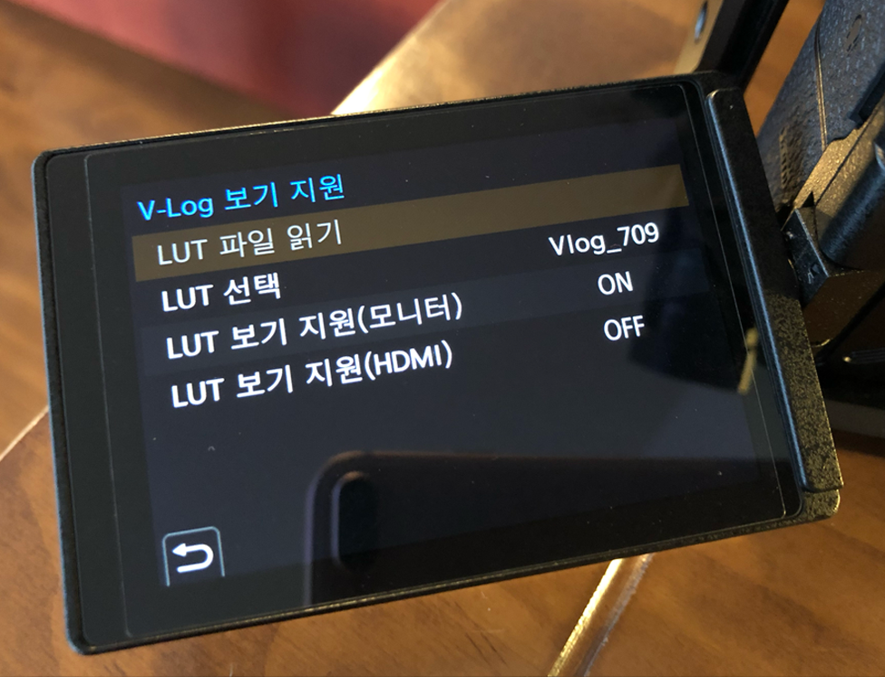 저렇게 지정만 한다고 끝난게 아니라 V-log 보기 지원 3~4번째 메뉴인 Lut 보기 지원(모니터) / Lut 보기 지원(HDMI) 를 ON 시켜줘야 해당 설정에서 V-log촬영시 Lut파일이 입혀진 상태로 미리 보기를 할 수 있습니다. 모두 ON을 했다면
