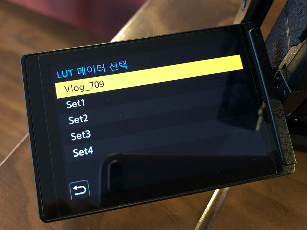 우선 파나소닉 S5의 기본으로 저장된 Lut 파일은 Vlog_709입니다. (하단의 Set1~4번은 사용자가 따로 메모리카드에 저장한 Lut파일중 즐겨찾기처럼 등록하는 공간입니다. ) Vlog_709 Lut를 선택하고 다시 이전 화면으로 돌아갑니다.