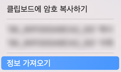 4. 오른쪽 터치패드를 눌러 "정보 가져오기"를 선택하세요. 혹시나 비번을 복사하고 싶다면 "클립보드에 암호 복사하기"를 선택하면됩니다. 저는 비밀번호를 다른 기기에 입력하는거라 정보 가져오기에서 암호를 확인해야합니다.