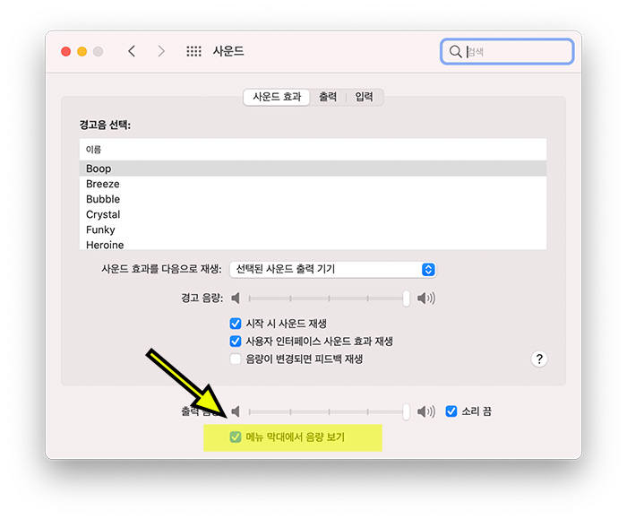 맥북 상단 메뉴에 사운드 설정 추가하기