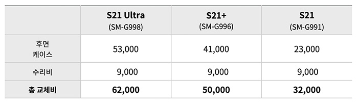 삼성 갤럭시 21 시리즈 후면 케이스 교체 비용