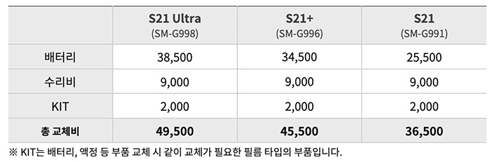 삼성 갤럭시 S21 시리즈 배터리 수리 비용