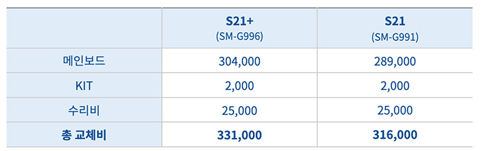 삼성 갤럭시 S21, S21 Plus, S21 Ultra 메인보드 교체 비용