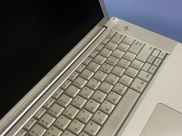 액정이랑 키보드 상태는 깔끔해서 좋았고 맥북 프로 글씨가 아닌 PowerBook G4의 문구도 마음에 들었습니다. 키보드 타건감도 괜찮았고 전체적으로 실버로 통일된 노트북의 마감까지 모두 만족스럽네요.