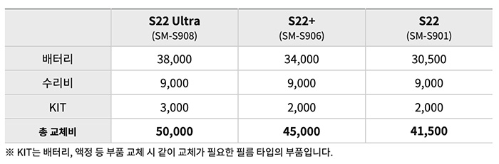 - S22(SM-S901) : 배터리 수리비 30,500원