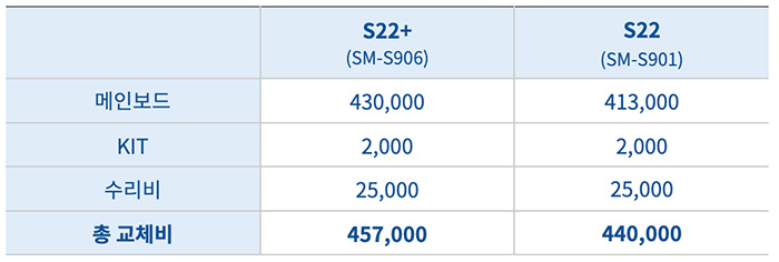 - S22 (SM-S901) : 메인보드 총 교체 비용 440,000원