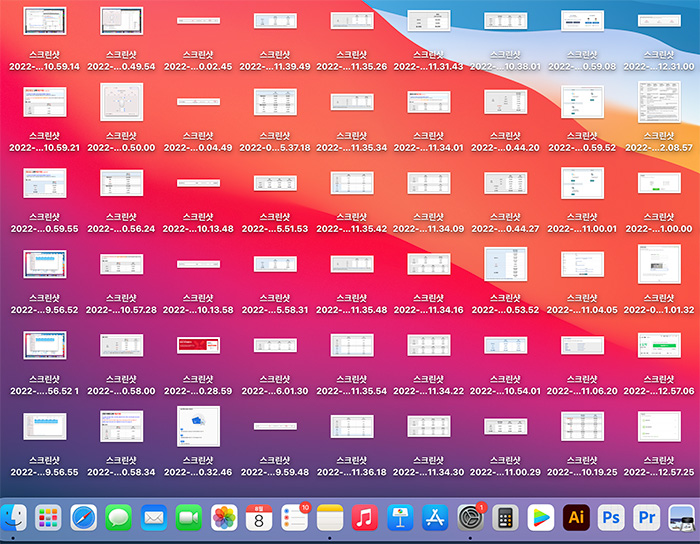 기본설정이 바탕화면 저장인데 스샷 몇개만 찍어도 바탕화면이 더럽고 이상해지는데 이렇게 "command + shift + 숫자5번"을 눌러 스크린샷 설정에서 자신이 원하는 폴더로 스크린 샷을 저장해보세요. 저는 바탕화면부터 정리를 해야겠습니다... 흙흙