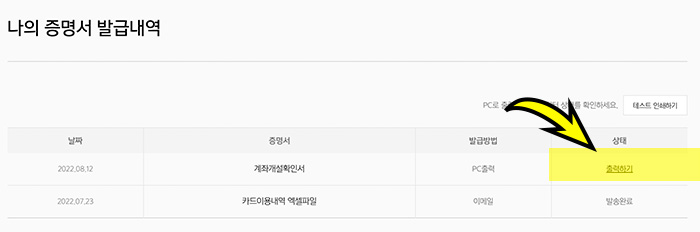 카카오뱅크 PC에서 발급신청한 증명서 출력방법