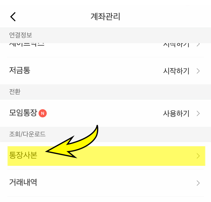 인터넷은행 카카오뱅크 앱에서 통장 사본 발급받는 방법