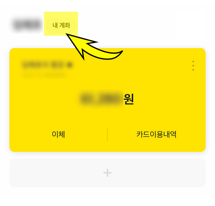 1. 카카오뱅크 앱을 실행해서 메인 홤면의 상단에 자신의 이름이 나오는데 그 옆에 "내 계좌"를 선택합니다.