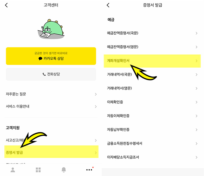 카카오뱅크 통장 사본과 계좌개설 확인서 발급 방법 - pc와 카뱅앱에서