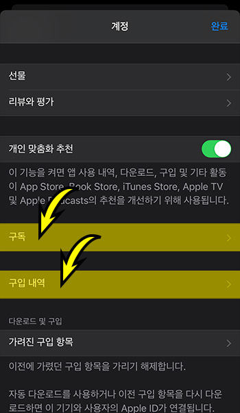 아이폰 앱스토어의 유료 결제와 구독 내역 확인방법