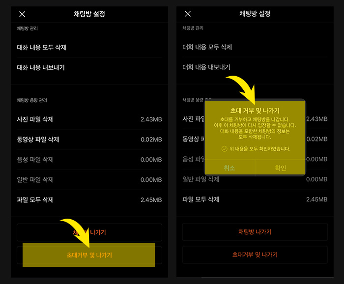 카카오톡 그룹채팅 초대거부 및 나가기 사용법