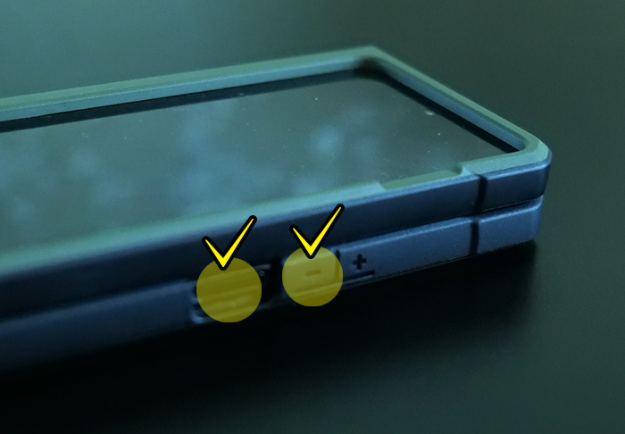 Z폴드3의 우측에 위치한 전원버튼과 그 위에 있는 볼륨"-" 버튼을 함께 누르면 찰칵 소리와 함께 화면이 저장됩니다. 다른 버튼들은 아니고 꼭 전원과 마이너스 버튼을 같이 눌러야합니다.