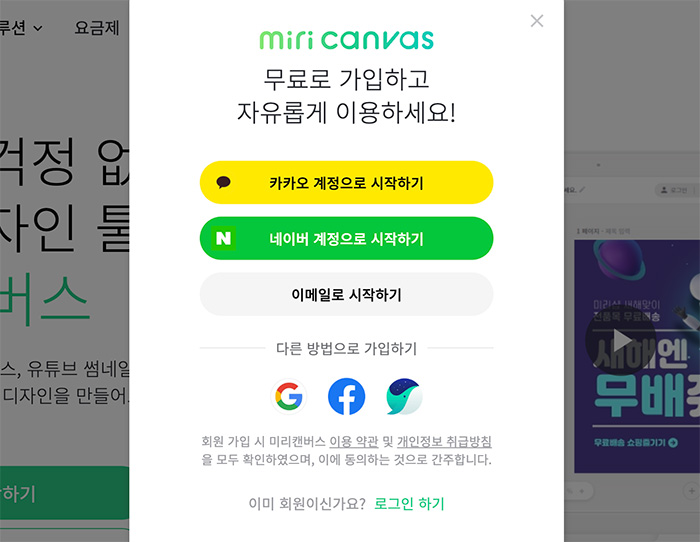 무료 디자인 플랫폼 미리캔버스 가입하기
