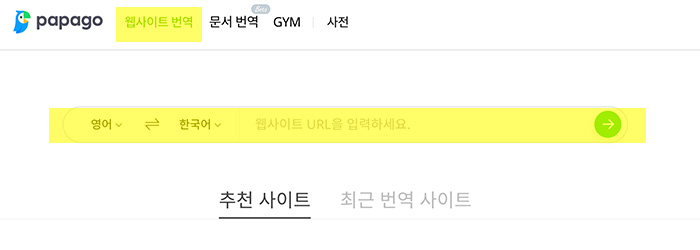 2. 상단의 메뉴에서 "웹사이트 번역"을 선택한 뒤에 번역하려는 사이트의 주소를 입력하면 해당 웹페이지를 번역해줍니다. 영문이나 일본 사이트들에서 정보를 찾을 때 유용하게 사용됩니다.