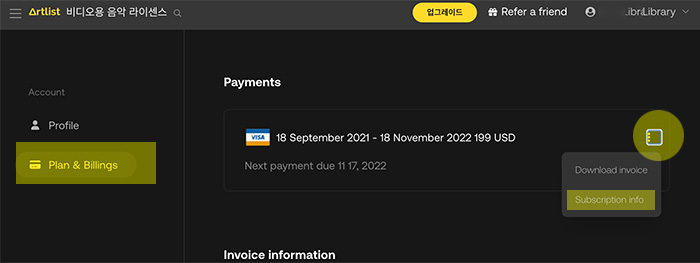 Artlist 자동결제 해지 방법