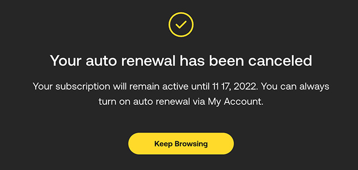 자동갱신이 취소됐다는 메세지입니다. 계정은 2022년 11월 17일까지 이용이 가능하고 언제든 계정의 자동갱신을 켤 수 있습니다.