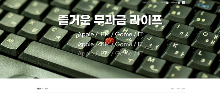 하지만 PC에서 23인치 이상의 모니터로 확인하는 경우에는 아래처럼 잘리지 않고 제작한 타이틀 이미지와 동일한 디자인으로 출력됩니다. 앞에도 말했지만 작은 노트북이나 해상도에 따라서 넓게 제작한 타이틀 이미지는 줄어드는 게 아니라 "잘리게"됩니다.