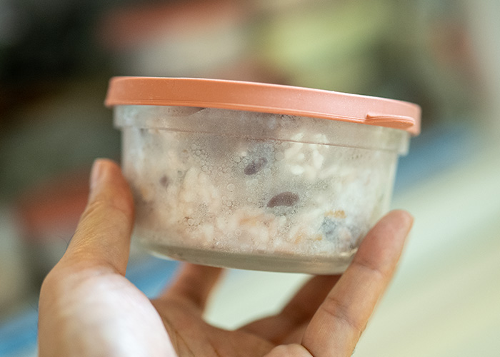기존에 구입했던 글라스락 무드브릭의 컬러 햇반용기는 이렇게 냉동실에 밥을 넣어서 차곡차곡 쌓아놨습니다. 다만 밥 용량을 가득 담을 경우 유리용기에 문제가 생길 수 있거나 보관 시 쌓아 올릴 때 잘 안 맞는 경우가 있으니 주의하는 게 좋습니다.