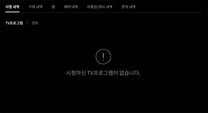 MY 티빙에서 "시청 내역" 탭을 확인하면 TV프로그램 / 영화 이렇게 두 종류를 확인할 수 있습니다. 네 시청기록이 따로 분리된 상태라서 TV 프로그램 따러 시청 기록을 삭제하고 영화도 또 따로 선택해서 삭제를 해야 합니다.