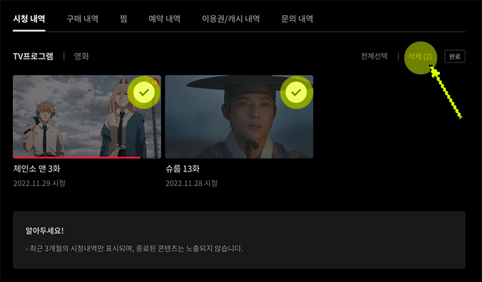 티빙 시청기록 삭제하는 방법