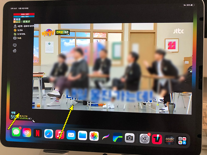 아이패드에서 게임도 실행하면서 스테이지 매너저를 사용해봤는데 오딘 게임 돌리면서 티빙에서 영상 시청도 문제없이 잘 돌아갔습니다.