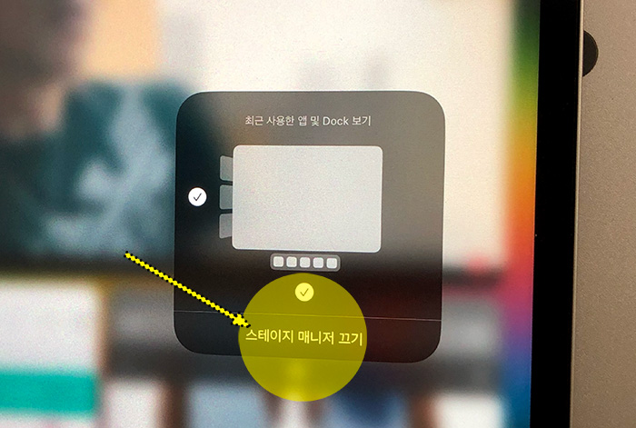 혹 해당 기능을 끄고 싶은 경우에는 같은 방법으로 스테이지 매니저를 선택하여 "스테이지 매니저 끄기" 버튼을 눌러 비활성화시킬 수 있습니다.