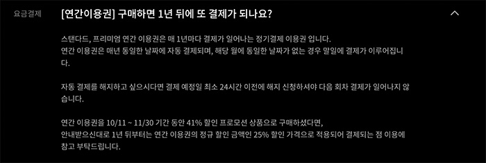 다만 다음 결제(연간이용권이라 내년)시기에는 25% 할인된 금액으로 결제라 10만 원이 넘어갑니다. 그래서 우선 1년만 써보자는 마음으로 다음 자동결제는 차단이나 해지를 하려고요.