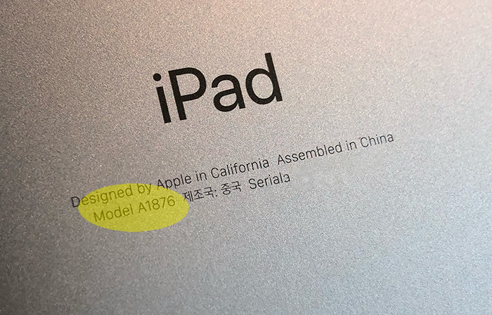 자신의 아이패드 뒤판을 보면 "Model AXXXX" 표시가 보입니다. A로 시작하는 애플의 모델번호로 이 번호를 가지고 어떤 제품이고 몇 세대인지 확인이 가능합니다.