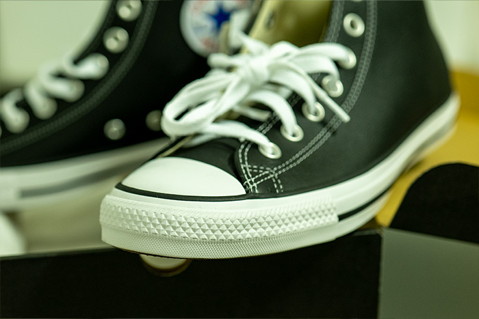 일반 컨버스랑 비슷하지만 소재만 겉면이 소가죽이라서 질감 차이만 있습니다. 일반 컨버스보다 살짝 푹신하고 도톰한 느낌이고 클래식 컨버스라고 보시면 됩니다.
