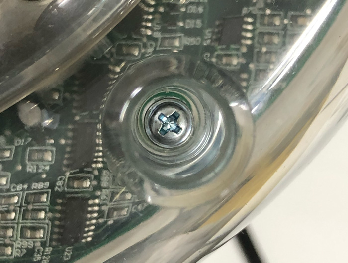 4. 이제 모습을 보인 우퍼의 나사입니다. 해당 나사를 다 풀어줘야 먼지를 가득 먹은 우퍼의 투명 플라스틱 커버를 벗길 수 있습니다. 나사가 깊게 박힌 상태라서 긴 드라이버가 필요합니다.