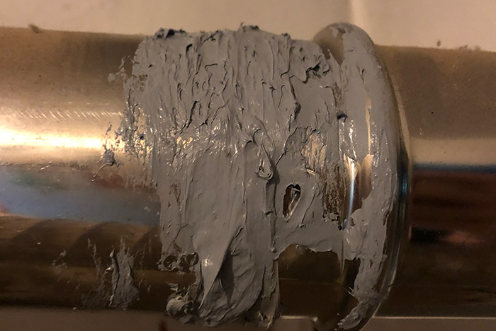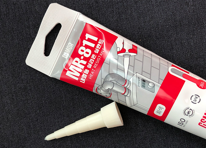보통 일반 보일러의 연통은 보일러 가동시에 고온의 가스가 나오기에 일반적으로 사용하는 실리콘으로 연결부위를 메꾸는 경우 실리콘이 녹을 수도 있습니다. 그래서 고온에도 견디는 "내열 실리콘"으로 틈을 막는거죠.