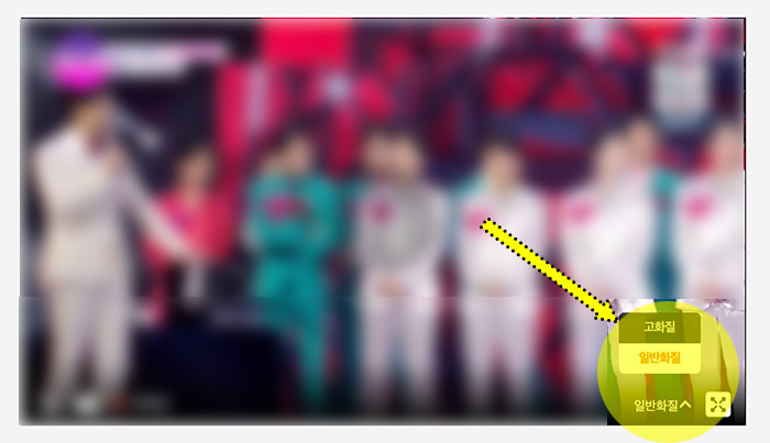 실시간 재생중인 화면의 하단을 선택하면 "일반화질/고화질"을 고를수 있습니다. 다만 MBN 홈페이지에 가입하여 로그인한 상태가 아니면 "일반" 화질로 방송이 나오고 로그인을 한 경우는 "고화질"로 시청이 가능합니다.