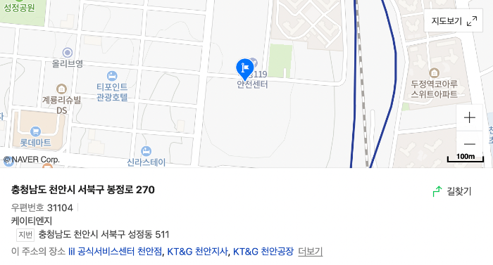 충남 천안시 서북구 봉정로 270 KT&G 천안지사 1층