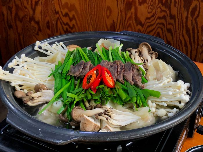 다음은 만두전골(소)입니다. 가격은 23,000원이고 각종 버섯과 만두 그리고 고기와 야채들이 들어있는데 비주얼이 정갈해서 괜찮았습니다.