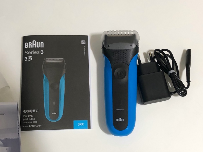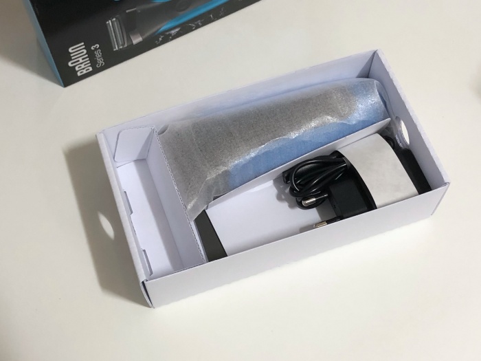 브라운에서 가장 저렴한 보급형 면도기라 구성품이 따로 없습니다. 청소솔이나 트리머같은 구성은 기대하기 힘들죠. 면도기 본체와 충전기 그리고 설명서가 들어있습니다.